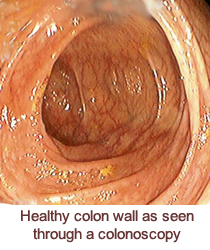 You will lie on your left side with your knees drawn up toward your chest. After you have received a sedative and pain reliever, the colonoscope is inserted through the anus. It is gently moved into the beginning of the large bowel and sometimes into the lowest part of the small intestine.